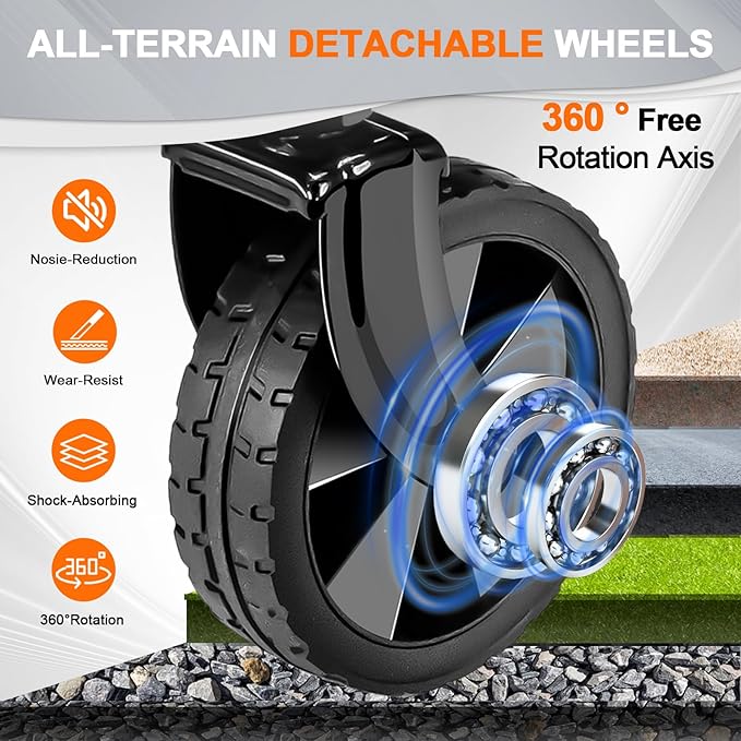 • REMOVABLE - All TERRAIN WHEELS: The wheels are made of high quality material, suitable for any road surface, with built-in rolling bearings - easy to pull, even with very little force you can easily pull the wagon, all-terrain wheels, whether on the beach, rainforests, gravel roads can ensure that you are safe and comfortable to pass