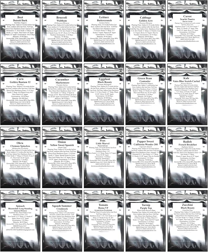 B&KM Farms 10,000 Non GMO Heirloom Vegetable Seeds for Planting Vegetables and Fruits (20 Variety Pack) - Gardening Seed Starter Kit, Survival Gear Food, Gardening Gifts, Prepper Supplies