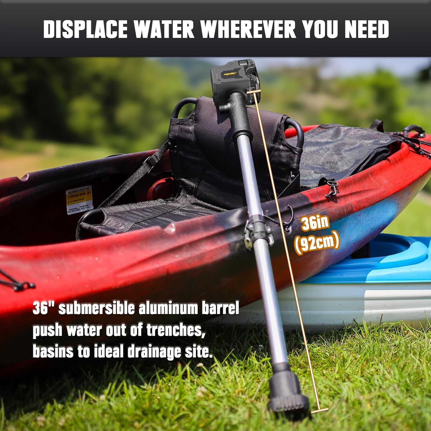 • 36" SUBMERSIBLE BARREL: This cordless sump pump features a 36-inch aluminum barrel that’s perfect for transferring water from rain barrels, flooded basements, and yards. Its lightweight and portable design ensures easy use in various applications