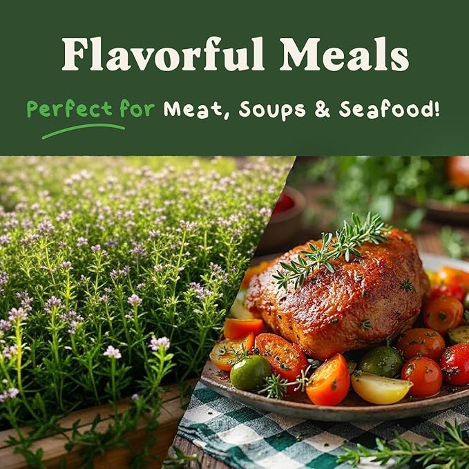 • Flavorful & Aromatic Harvests – Elevate your culinary creations with the earthy, savory flavor of homegrown thyme. Perfect for soups, roasts, marinades, and more, fresh thyme adds depth to any dish.