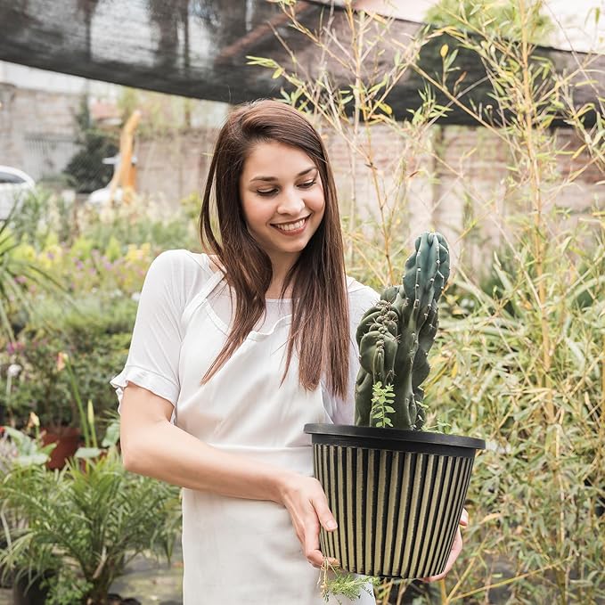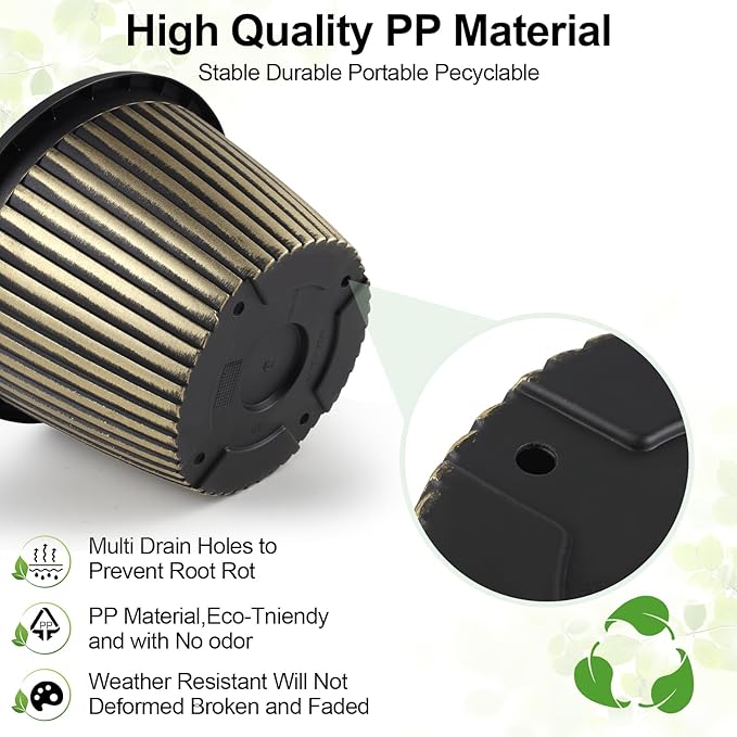 • 【MODERN STYLE PLANTERS】 Indoor planters with saucers provide a unique,nice style in ribbed design which gives an understated elegance that will enhance the beauty of your plant. These 12 inch plant pots are available in red-brown &blue-green & gold finished with a black antique stain. Plastic flower pots would be a beautiful addition to anyone’s deck or sunroom or house!