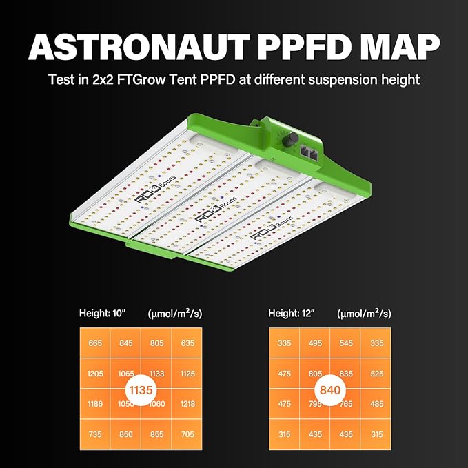 • POWERFUL PERFORMANCE: The Astronaut 2x2 Grow Light uses high-quality SANAN 3030 LED chips to output 120W of power, providing intense lighting for plant growth in 2’x2′ & 3’x3′ spaces.