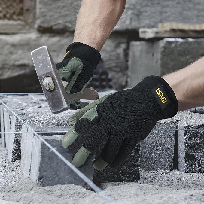 • Breathable & Reinforced Design: Featuring stretchable spandex backing, these leather work gloves keep your hands cool, dry, and comfortable while providing extra durability with reinforced fingernail patches