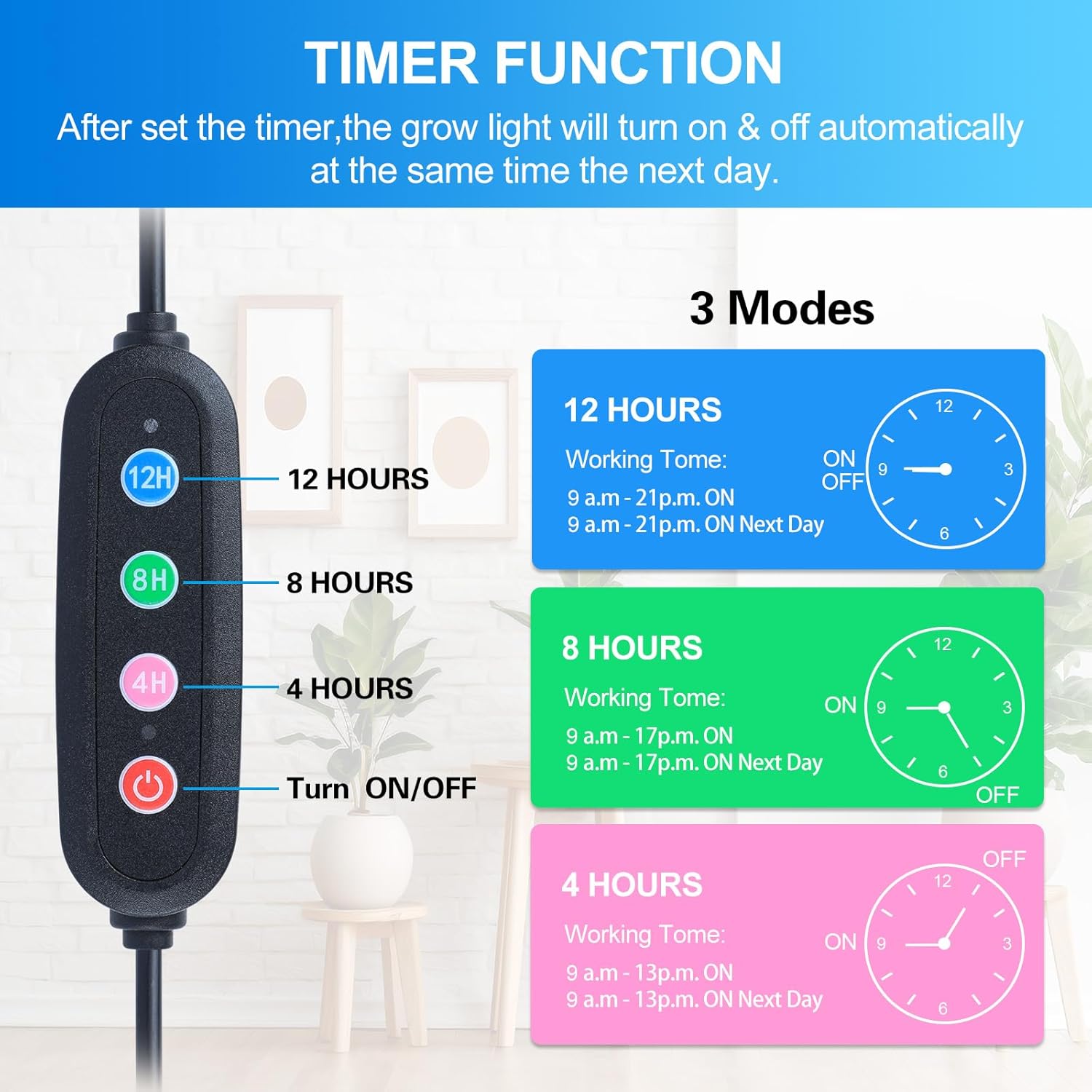 • Timer for Auto On/Off Plant Grow Light --- 4/8/12H Timer for Auto On/Off Everyday Indoor Plant Light, Premium Grow Lights for Indoor Plants