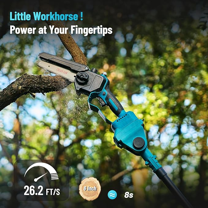 - Conquer Every Task with 6-in-1 Power: Feel fully equipped for any job with SEESII’s all-in-one tool—mini chainsaw, hedge trimmer, grass shear, and more. Switch effortlessly between functions and reach new heights with the extendable pole. No clutter, no hassle—just pure efficiency for every corner of your yard