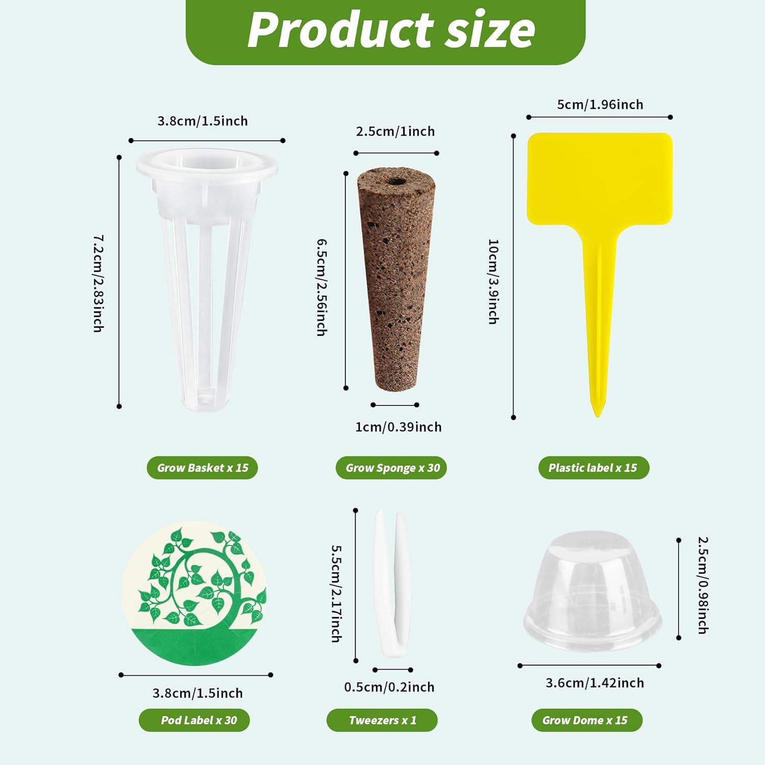 • Seed Pod Kit Include: You will get 106 pcs hydroponic growing kit,with 30 Grow Sponges,30 Pod Labels,15 Grow Baskets,15 Grow Domes,15 Tags,1 tweezers.The baskets and domes can be recycled multiple times.