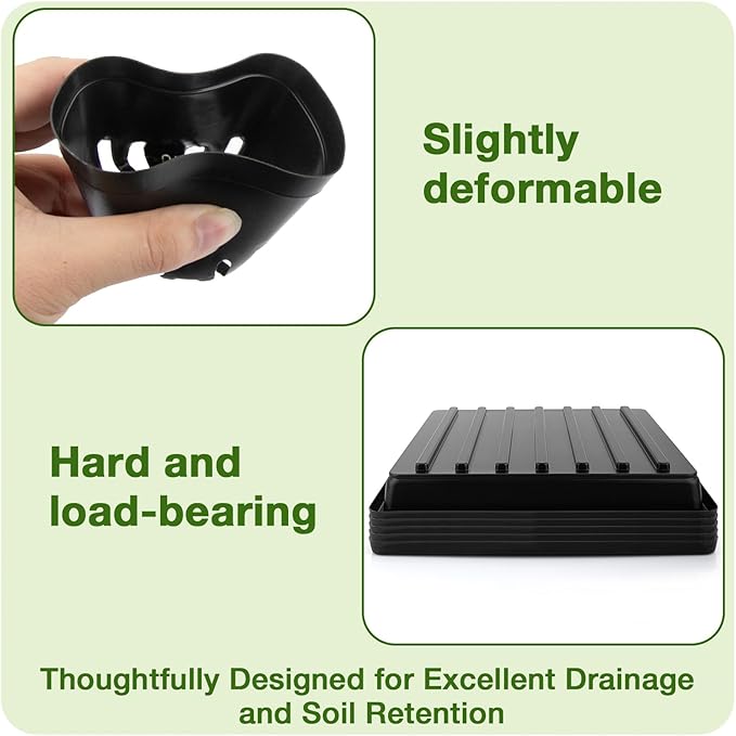• [Convenient Design] The seedling trays feature no drainage holes, serving as a perfect complement to the cups. They efficiently collect excess water, making seedling care a breeze and maximizing efficiency in your gardening endeavors.