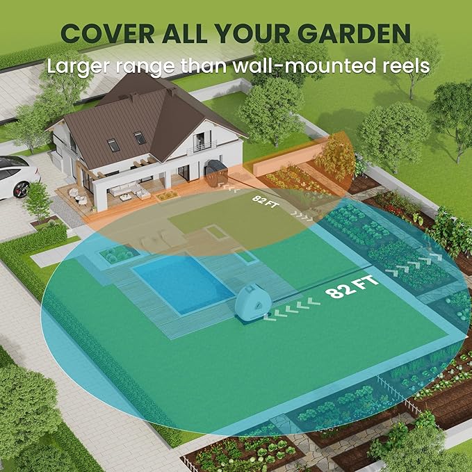 • NO MESS, NO STRESS- Stop wrestling with tangled hoses! This reel auto-retracts with a gentle tug, store the hose neatly, saving time and backyard space. User-friendly details with the hide-in handle and detachable front cover make it enjoyable for all ages.