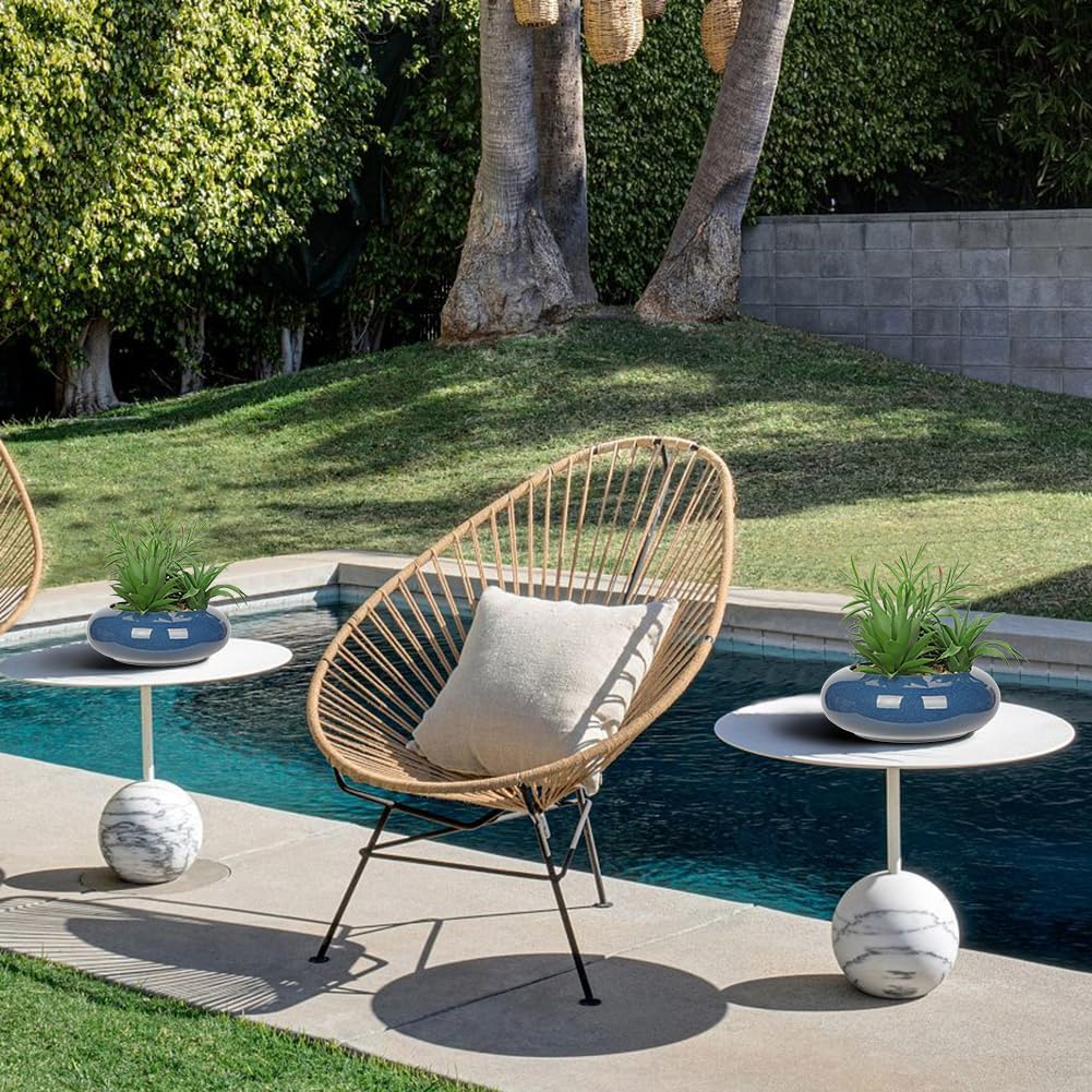 • 【LARGE SIZE SUCCULENTS】Artificial succulent blue pot size approx: 7.8" wide x 3.1" tall, 1 pcs fake succulent ⭕❗Please read the measurement more attentively. Lifelike succulents artificial potted in blue ceramic pots, covered with stones, whether indoor or outdoor fake succulent plant looks so real and cute.