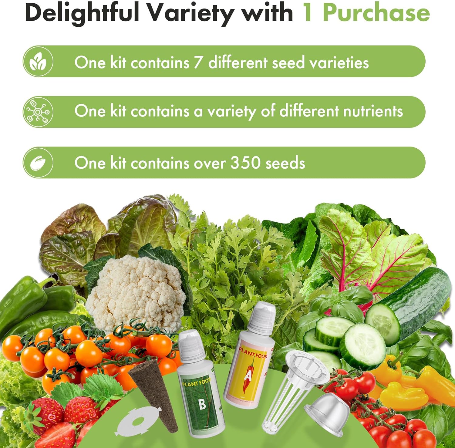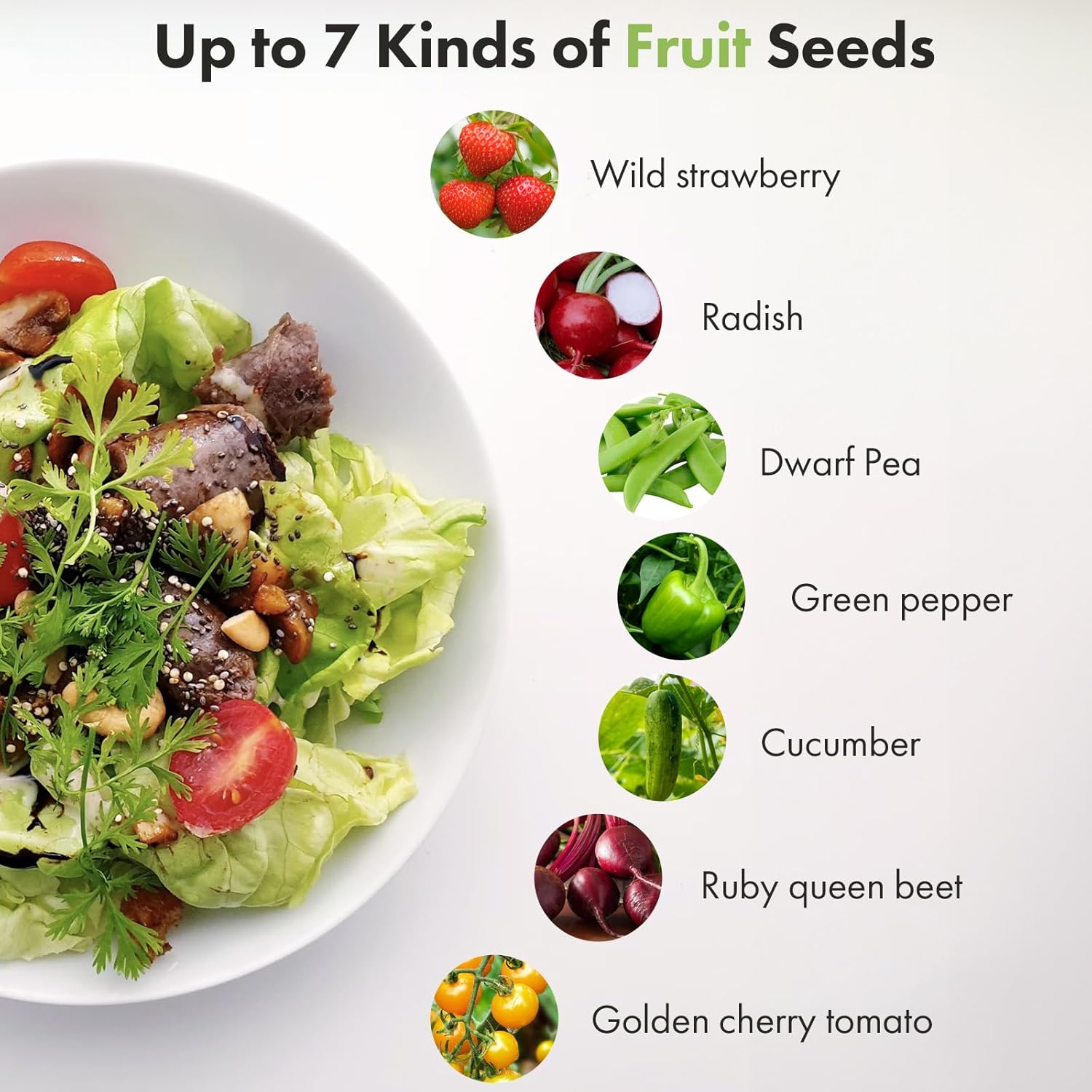 • 【Complete Accessories】Hydroponic fruit seed kit not only has 7 kinds of herbal hydroponic seeds (Red strawberry, Dwarf Pea, Green pepper, Cucumber, Ruby queen beet, Golden cherry tomato) but also includes a set of 18 growth sponges, 20 pod labels, 18 baskets, 18 domes, and A&B Plant Food. With more than 350+ seeds to choose from, choose your favorite hydroponic seeds to plant and enjoy endless planting fun!