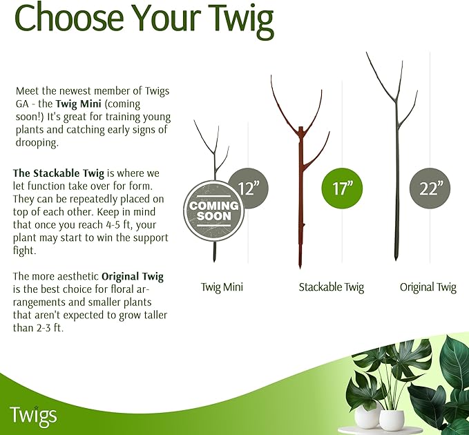 • ESSENTIAL PLANT ACCESSORIES: Twigs GA plant support stakes are a must-have for any plant lover. These stakes offer reliable support without sacrificing the aesthetic appeal of your living space. Note: Twigs are not meant to support large plants over 5 ft or stems greater than 3/4".