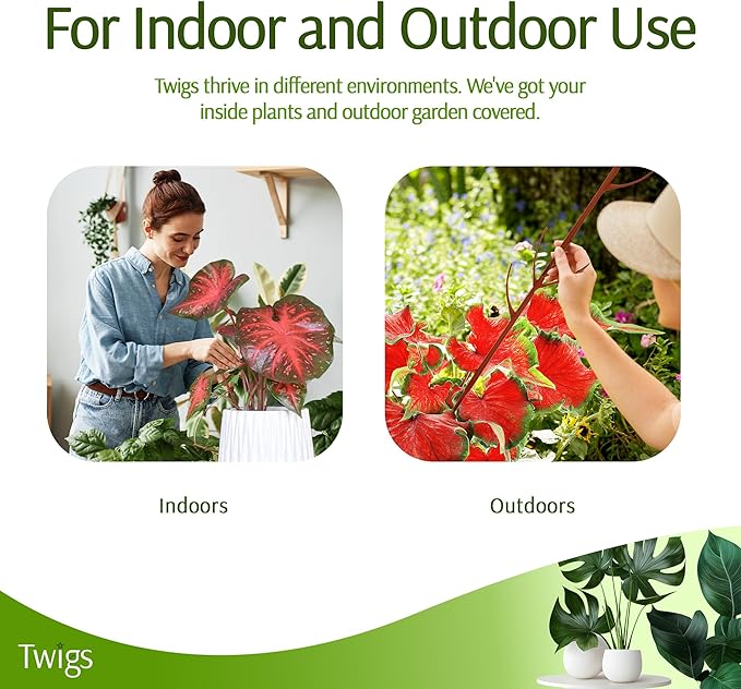 • VERSATILE AND RELIABLE SUPPORT: Twigs GA Plant Stakes are perfect for indoor and outdoor use. They provide sturdy support for climbing and leafy plants, ensuring they stay upright and thrive. Ideal as substitues for plant cages or plant pins.