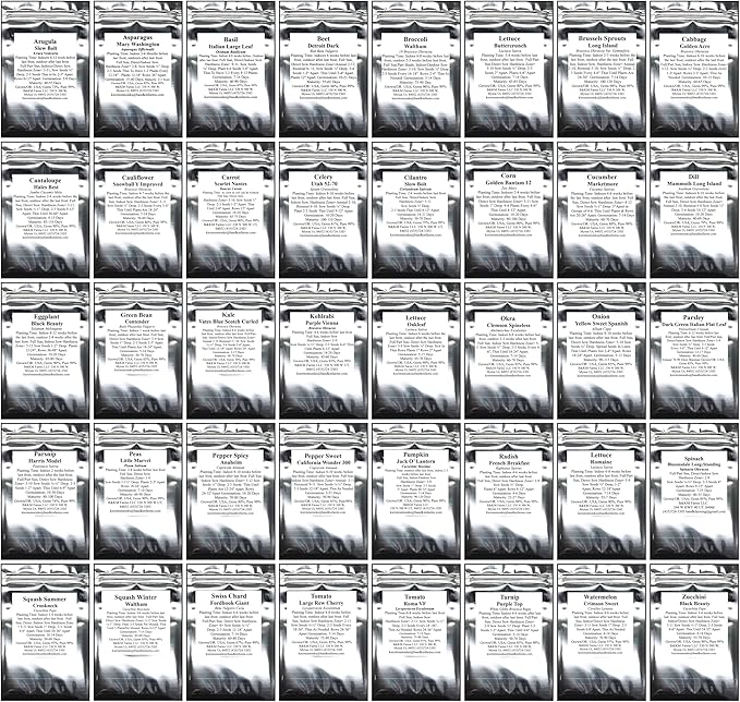 • SURVIVIALIST'S DREAM & GARDENER'S DELIGHT: 25,000+ Heirloom & Non-GMO seeds in 40 easy-to-grow varieties for a decade of delicious harvests. An average of 80% or higher germination rate