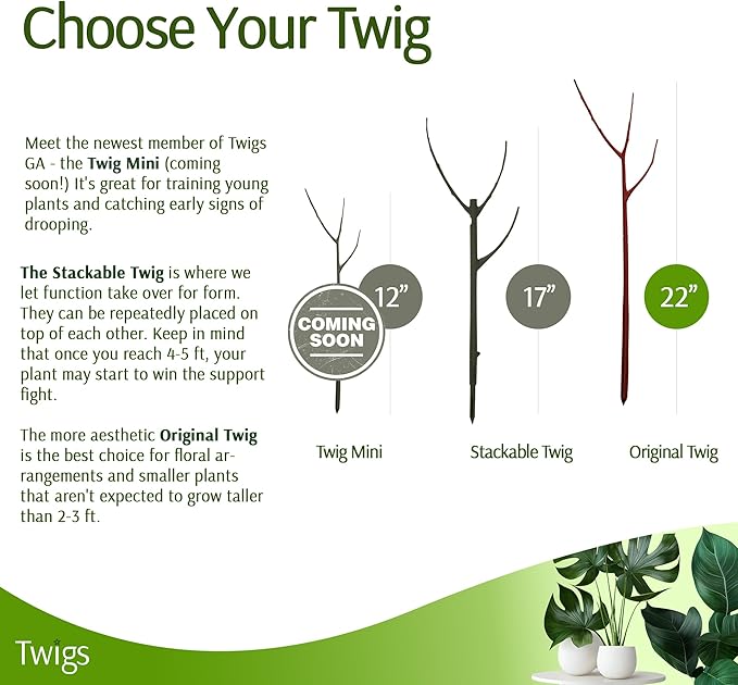 • CONVENIENT PLANT SUPPORT STAKES: Twigs GA Original Twig Plant Stakes provide structure to both indoor and outdoor plants. These plant supports for potted plants deliver convenient support without twist ties or clips, ensuring your plants stay upright and healthy.