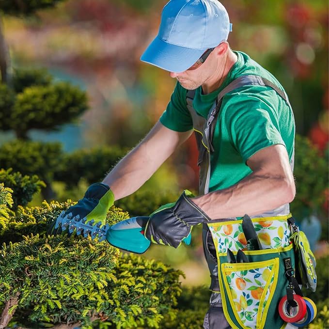 • Unique Design:Garden tool belt for women and men with 1 Carabiner,Heavy Duty Clip and Tape Chain in addition to 4 pockets of different sizes.To organize your different tools.