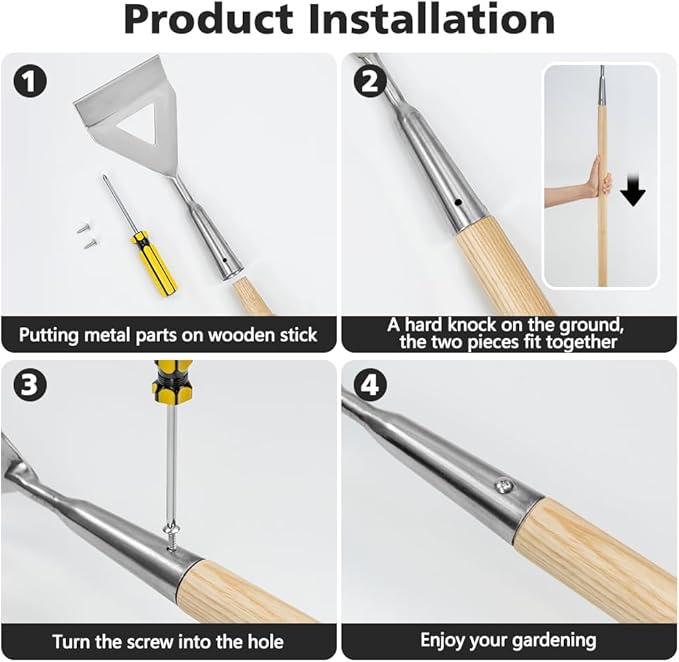 • WHAT YOU GET - 1 * 51.2'' Stainless Steel Dutch Hoe for Women. Our garden dutch hoes are made by traditional manual process and can be used for more than 10 years. The more the wooden handle and stainless steel will be used, the smoother it will be. Ideal for loose soil, weeding and more gardening tasks. So light and strong, make your garden work easy and interesting.