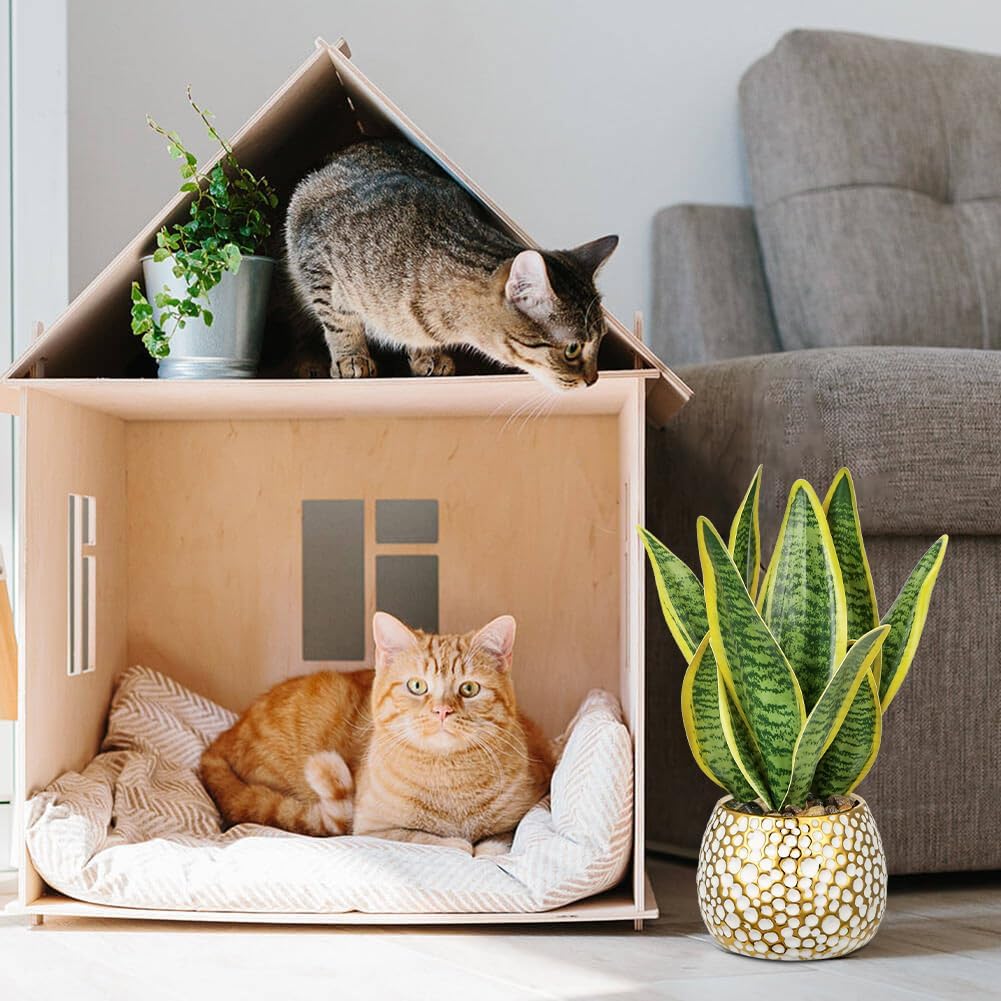 • MAINTENANCE FREE: Decorative 12 full leaves faux plants are a practical alternative to living plants. Our small FAKE snake plant artificial looks like you've been babied it for years, but never need water or sun. The first choice of housewarming gift! Or present for your friends, family, and loved ones