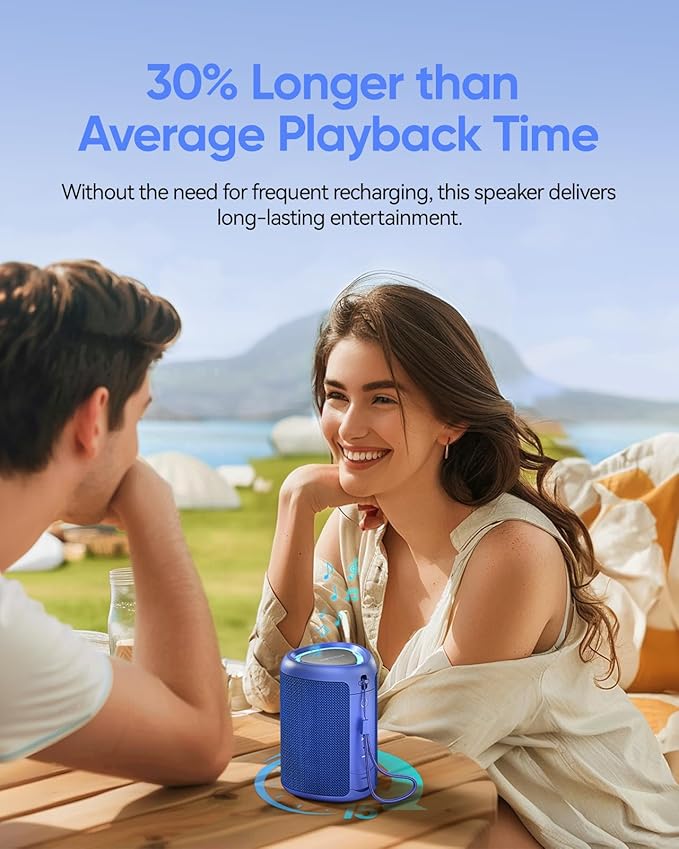 • 【Immersive Sound】: Experience stunning 15W(20W peak) sound in a compact design. With zero distortion audio, this Bluetooth speaker delivers loud highs, crisp midrange, and full bass for an immersive listening experience. With up to 15 hours of playtime on a single charge, enjoy your favorite tunes all day and night without interruption