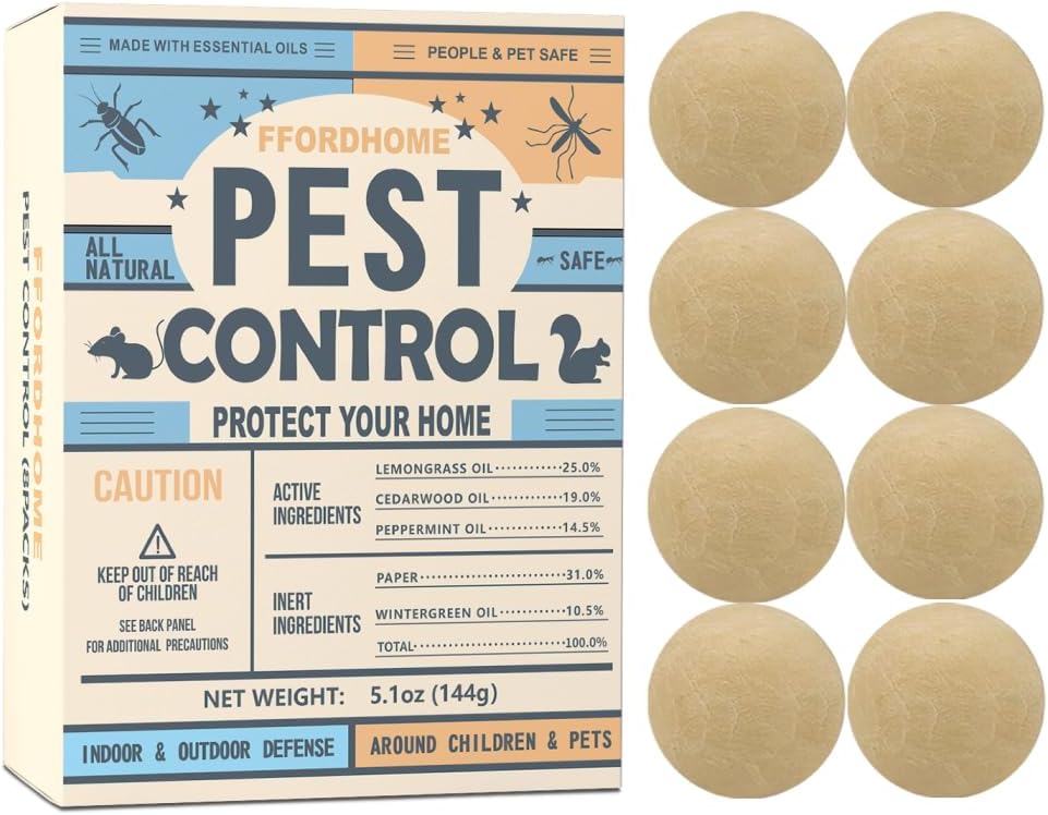 • COMPREHENSIVE COVERAGE: Say goodbye to unwanted guests in your home. Our repellent works against a wide array of pests, including spiders, roaches, fly, Silverfish, and moths. Place the balls in any infestation-prone area — covering up to 120 square feet — to prevent pests from entering or nesting.