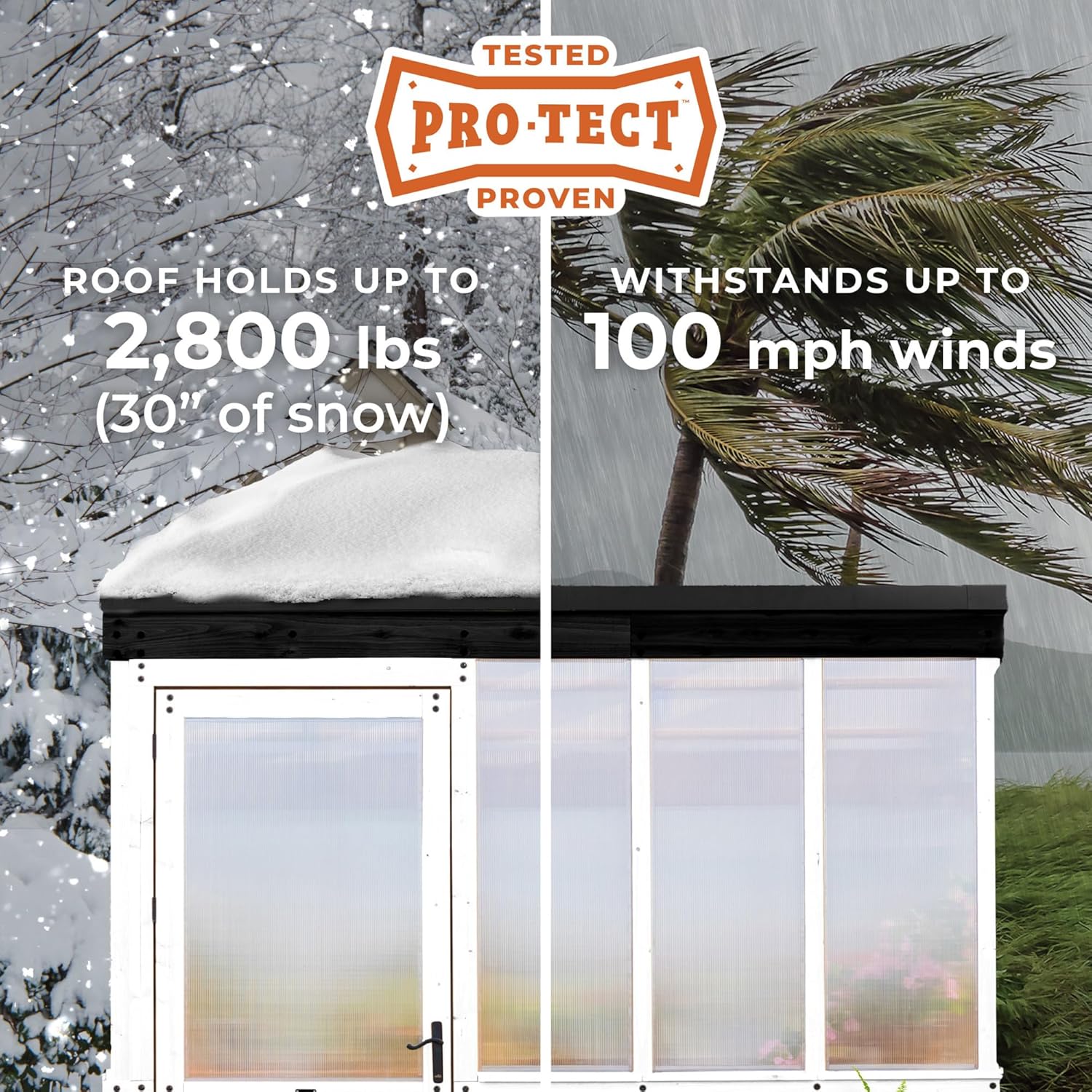 • All-Weather Durability: Pro-Tect tested and proven to withstand up to 2,800 pounds or 30 inches of snow load, and winds up to 100 mph (product must be anchored as specified in the Backyard Discovery instruction manual)