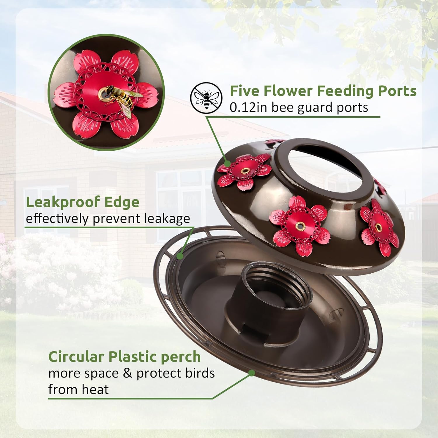 • Leak-Proof Design: The bottom of this hummingbird feeder are consist of premium metal cap and plastic base with leak-proof edge; Therefore, you don't need to worry about messy spills or waste of nectar