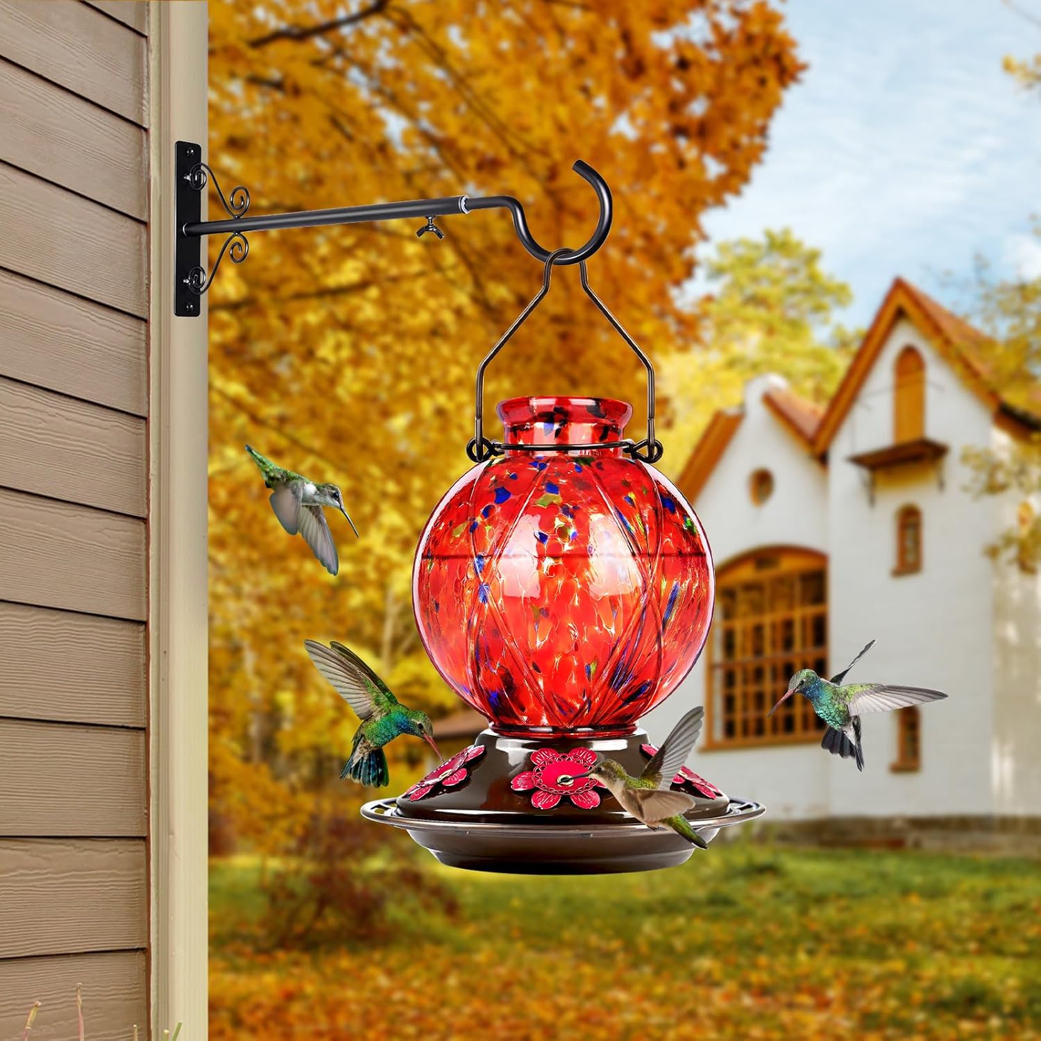 Hummingbird Feeder, BOLITE Glass Hummingbird Feeders for Outdoors Hanging, 20 Ounces, Leak Proof, Meshy Texture Ball Shape Bottle, Red, Birthday Gifts for Women Men, Gifts for Mom Dad