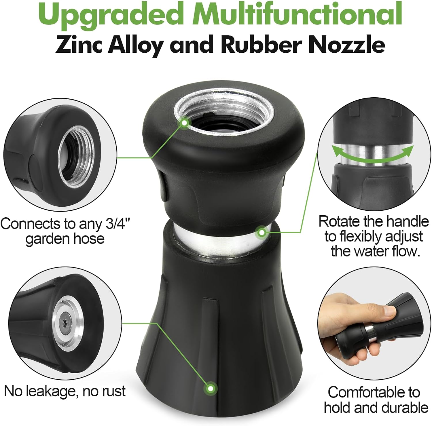 • Highly Efficient Water Flow:With the nozzle, there is more water flow than other hoses at the same time, which can save your time to improve efficiency.The nozzle is made of high quality zinc alloy and rubber can be connected to any standard US 3/4” garden hose