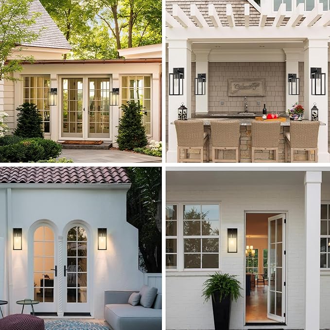• 【High-Strength Transparent Glass】Unlike ordinary glass wall lights, our outdoor porch lights are designed with 4 high-strength transparent tempered glass panels, which are not easy to break, stable, and durable enough. It allows the exterior lighting fixtures to illuminate the house with bright light and also showcases your choice of bulbs to create a beautiful lighting atmosphere.