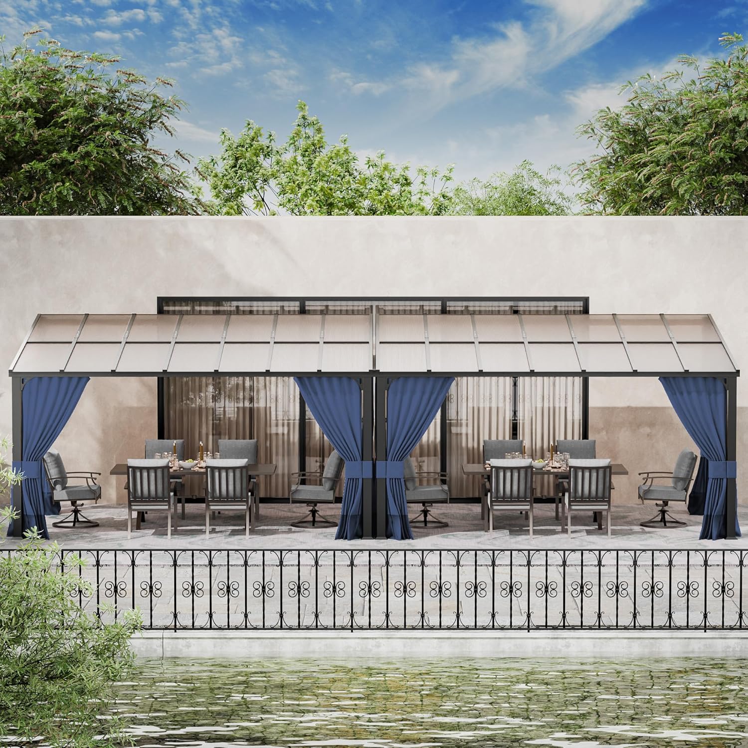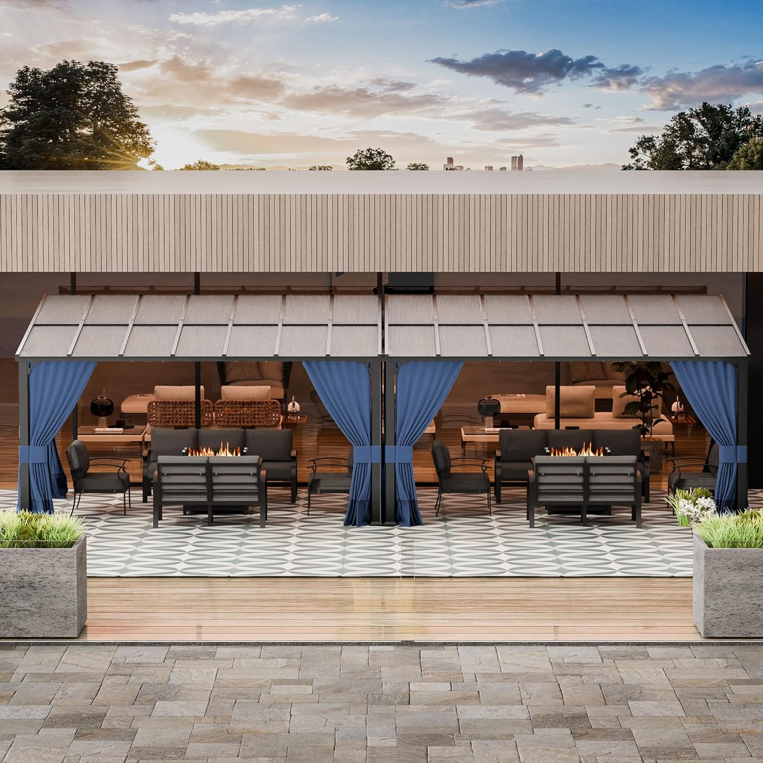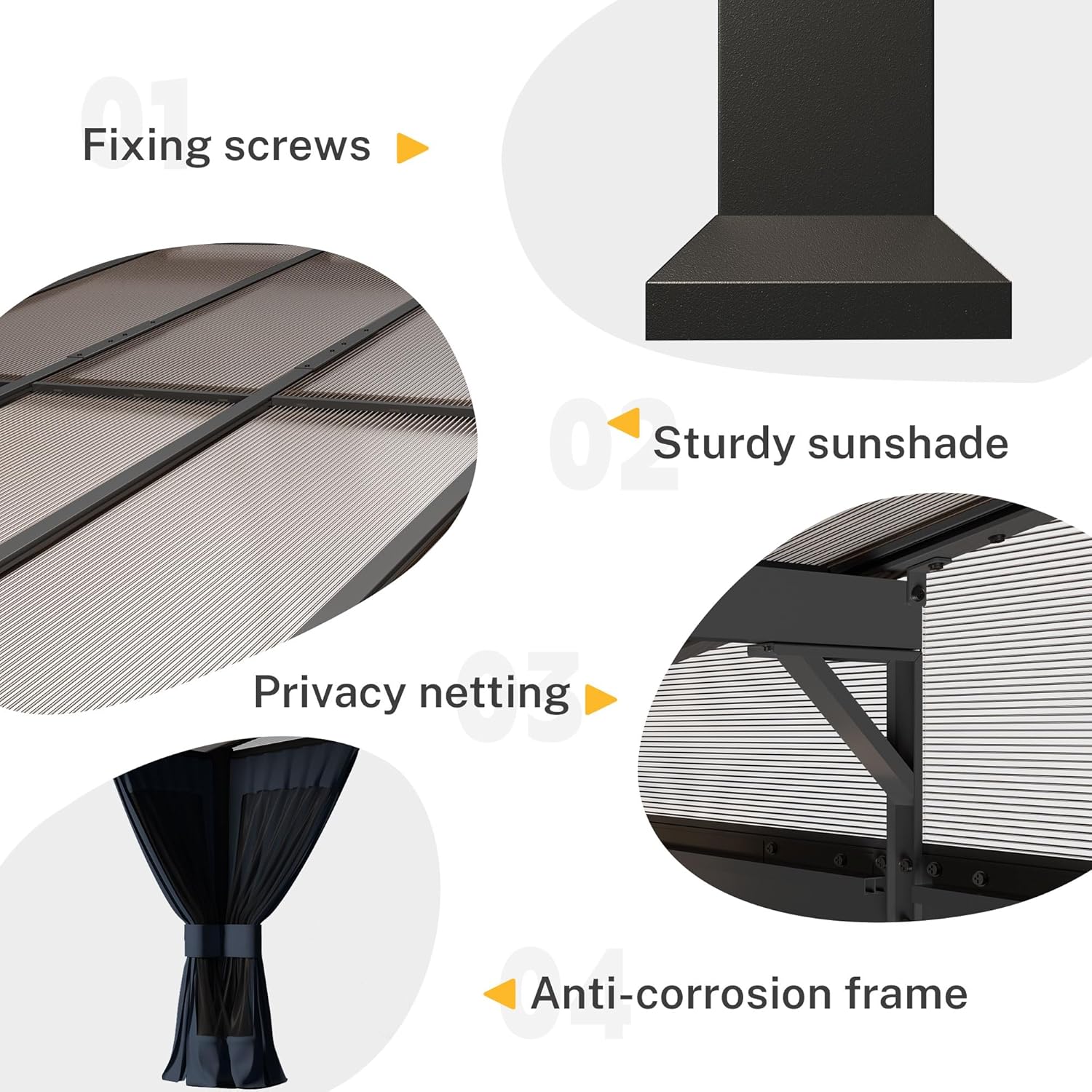 • USAGE SCENARIOS: Gazebo is very large and can accommodate multiple people. You can also place an outdoor furniture set underneath the gazebo. Wall mount heavy hardtop gazebo is suitable for installation on the side of the house, under the eaves, along the porch, in the patio, and is suitable for use next to a wall. Outdoor pergola can be used to host a variety of parties.