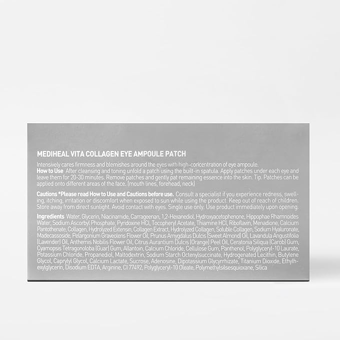 Mediheal Vita Collagen Under Eye Patches for - Korean Hydrogel Eye Pads (60 patches) with 7 Vitamin & 5 Micro Collagen. Moisturizng & Non Irritating Eye Gel Mask. Sealing Cap Included.