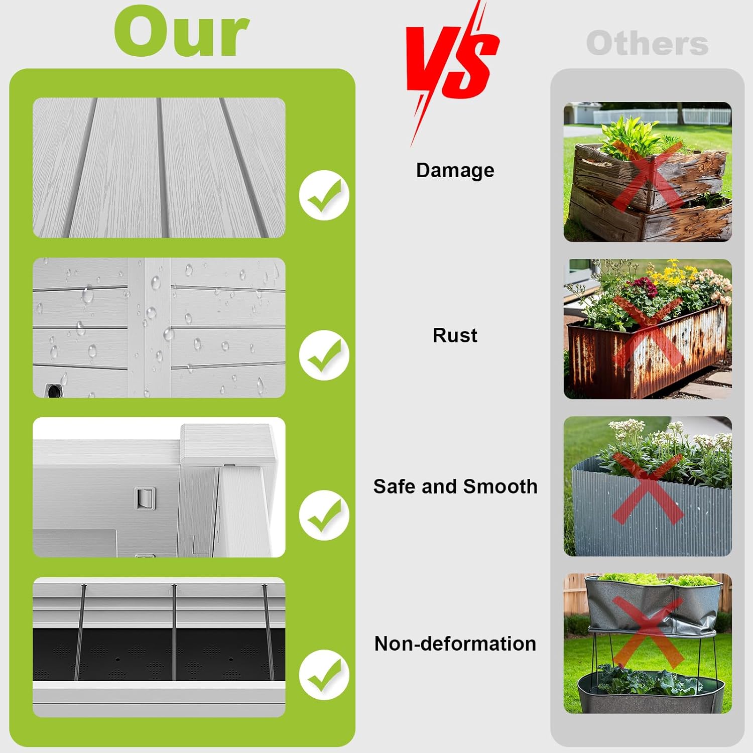 Elevated Raised Garden Bed,Outdoor Large Resin Patio Planter Box Stand Divisible with Drain Plug,Water Monitor for Plants Vegetables Flowers Fruits(Ashen)