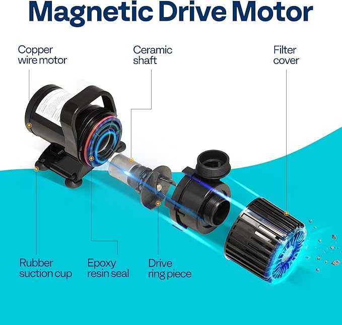 • HUMANIZED DESIGN: The nozzle can be step-less rotated within a 180-degree range to meet specific needs; 4 rubber suction cups effectively reduce resonance noise, maintaining a low running noise level of 30-40 dB; The fountain pump also incorporates overload protection, automatically shutting down at a motor temperature of 221°F to enhance safety during use