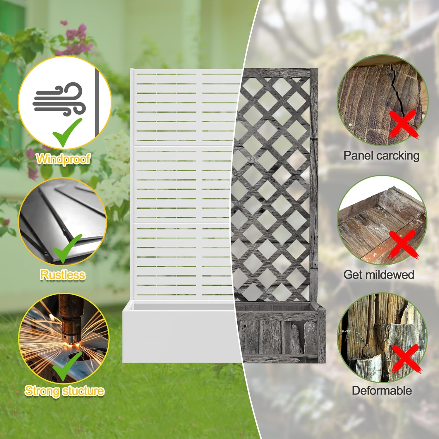 FENCY Metal Raised Garden Bed with Trellis, Metal Planter Box with Trellis, Garden Box for Climbing Plants Vegetable, 35" Lx16 Wx71 H Garden Bed with Drainage Holes(White-Louvered)