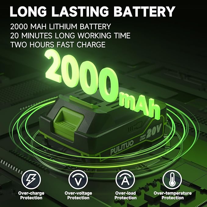• LONG-LASTING CHAINSAW: Pocket chainsaw is equipped with a 2000Ahm large capacity lithium battery that allows your mini cordless chainsaw to work for 20 mins without interruption. Every rechargeable battery has 100+ charging cycles in its lifetime. The chains are made of high-hardness steel and the bar plate is deep-quenching processed, they're all anti-fracture & anti-rust.