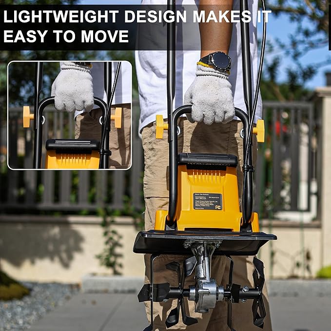 • ✈️ Lightweight & Powerful ✈️ Garden cultivator electric is a very powerful electric tiller, has a good guard to stop dirt from going everywhere. Ran it to tackle the tough consolidated soil and stubborn weeds, cultivator ate through it like a champ.