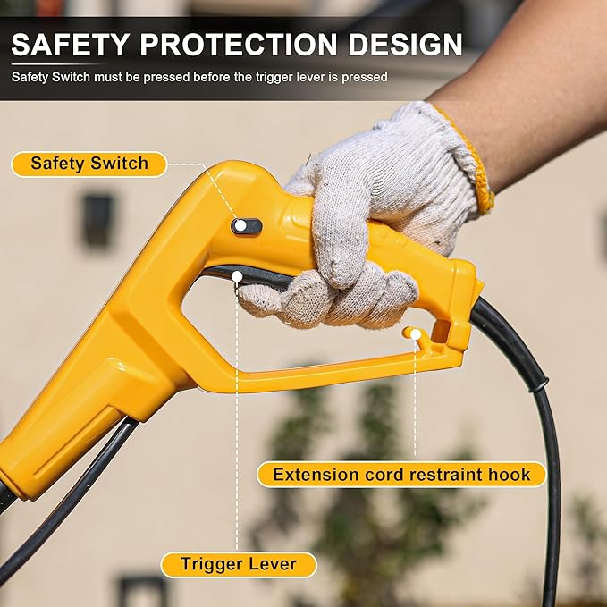 • ✈️ Automatic stop mechanism✈️ IncwBo electric rototiller is its built-in safety mechanism, designed to protect both the user and the machine. Garden tillers often encounter a variety of obstacles buried in the soil, such as rocks, dense clay, and particularly troublesome tree roots. Our rotor tiller would protect the tiller and ensure user safety by stopping the motor immediately when hitting large roots or hard objects, preventing potential damage and accidents.