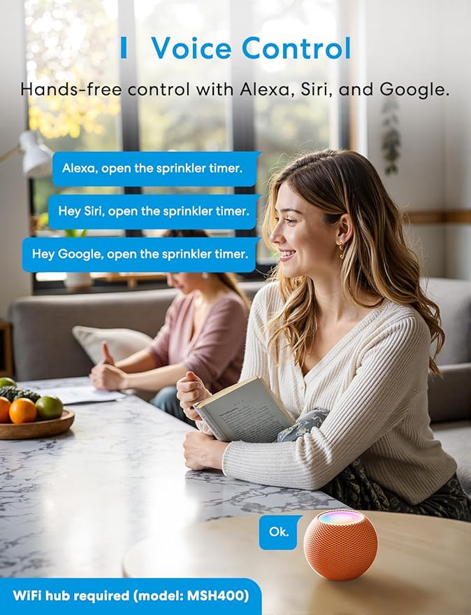 • Multi-Platform Smart Integration: This wifi water timer works seamlessly with Apple HomeKit, Alexa, and Google Assistant. Set it up once, and enjoy the convenience of voice control and remote management, whether you're home or on the go!