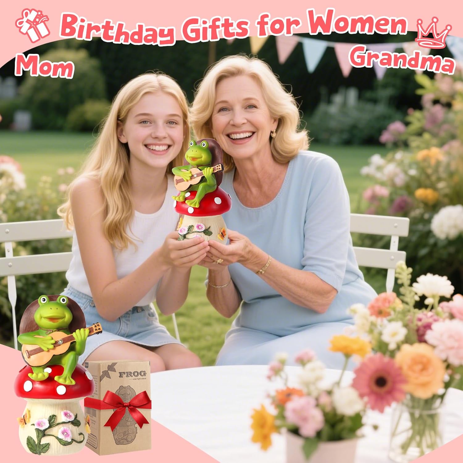 Birthday Gifts for Women Frog and Mushroom Garden Statue,Home Halloween Decorations Outdoor Funny Solar Lights Garden Decor Art Housewarming, Patio,Yard,Lawn Ornament