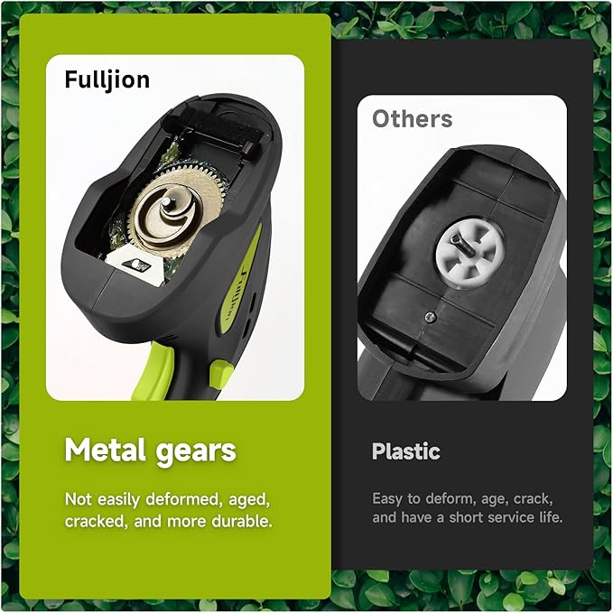 • Upgraded metal gear: The handheld light-duty Shrub Clipper Grass Cutter use metal gears, which rotate faster and bring you higher work efficiency. The metal gears are less prone to deformation and breakage, making them more long-lasting