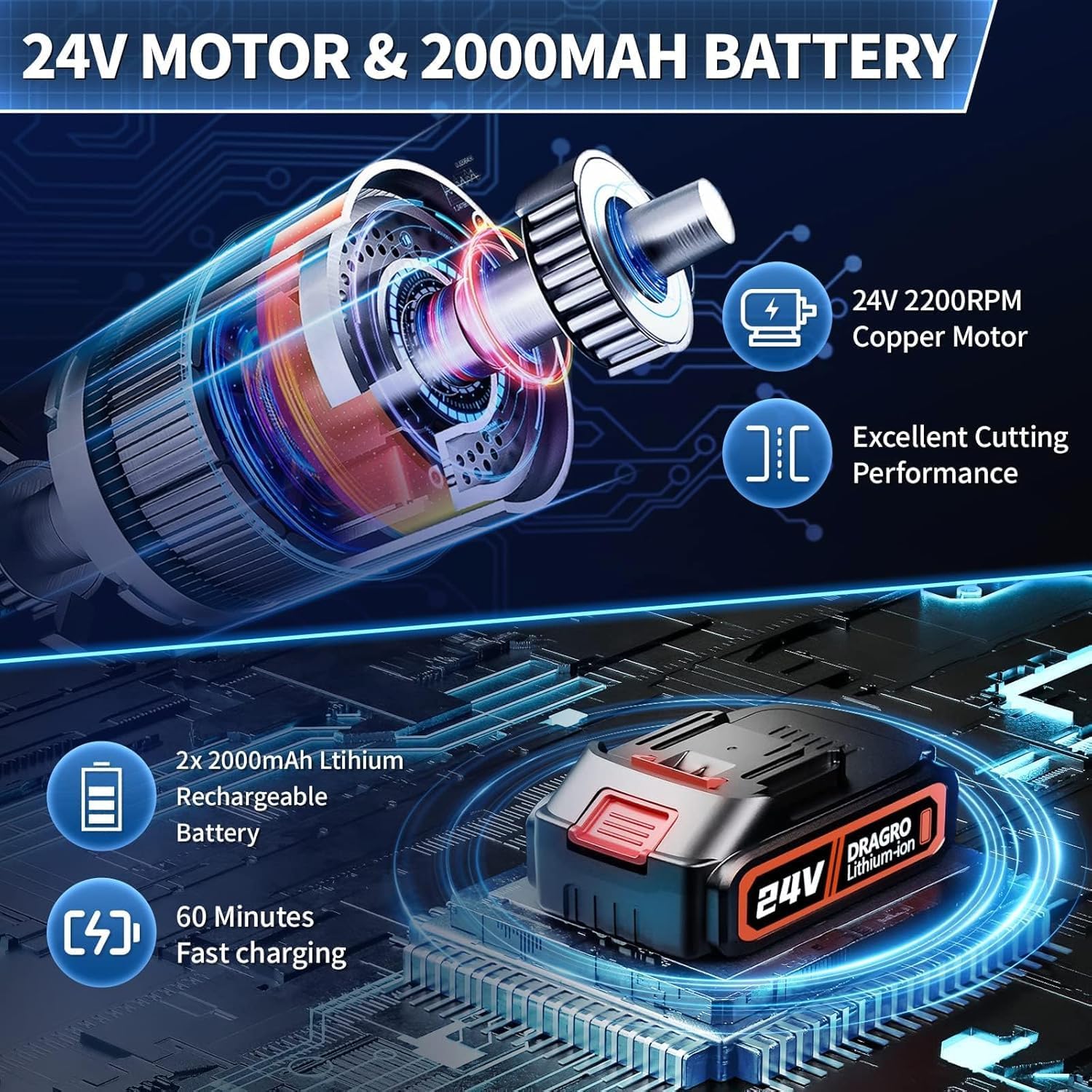 • ✔✔【POWERFUL POWER & BATTERY】:Our hedge trimmer cordless & bush trimmer boasts a upgraded strong motor, operating at a no-load speed of up to 2200 rpm. Equipped with 2x 24V 2000mAh rechargeable lithium battery. With up to 80 minutes of continuous operation(2 battery), it has longer battery life, durable and long-lasting, allowing the cordless shrub trimmer to always maintain a stable and efficient working state, allowing you to easily and quickly complete the design of the garden hedge.