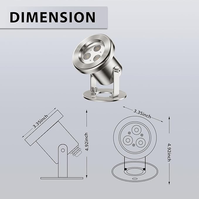 • IP68 Waterproof Designed for Outdoor - Our underwater lights are made of high-quality SS316 stainless steel and integrated sealing design, which features corrosion resistance, good heat dissipation and durability. Improved IP68 waterproofness ensures a longer service life.