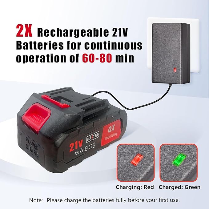• Complete Set: Includes 1 trimmer, 1 auxiliary handle, 1 set of wheels, 1 safety guard, 3 blade types, 2 x 21V/1500mAh batteries, 1 charger, and 2 wrenches; ready to trim without extra purchases
