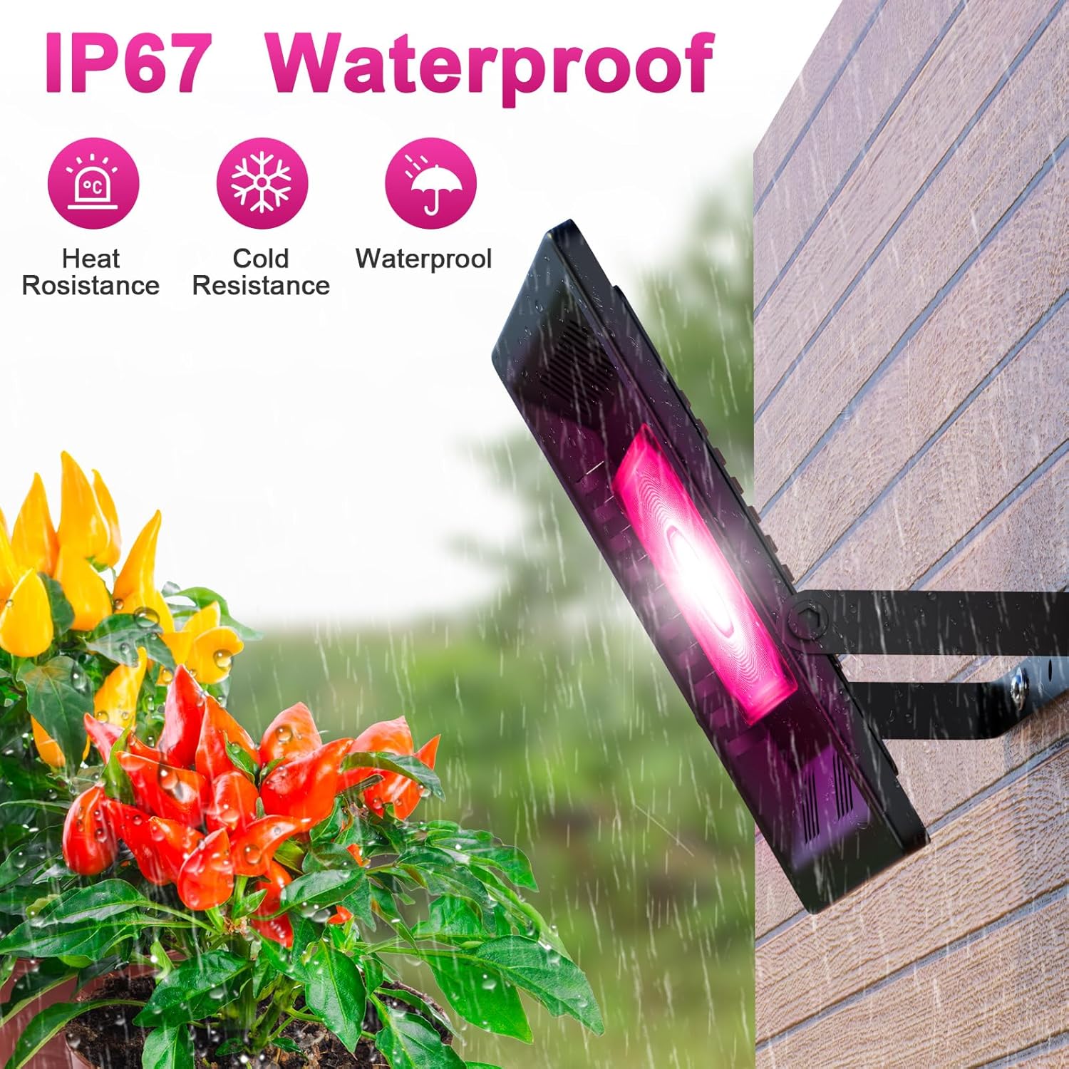 • IP67 Outdoor Grow Lights Waterproof - IP67 technology ensures the led grow light waterproof and dustproof, suitable for indoor and outdoor plants. It can work well in the windy, rainy, or snowy days and you needn't worry it is damaged due to water seepage. Always help you take good care of your plants