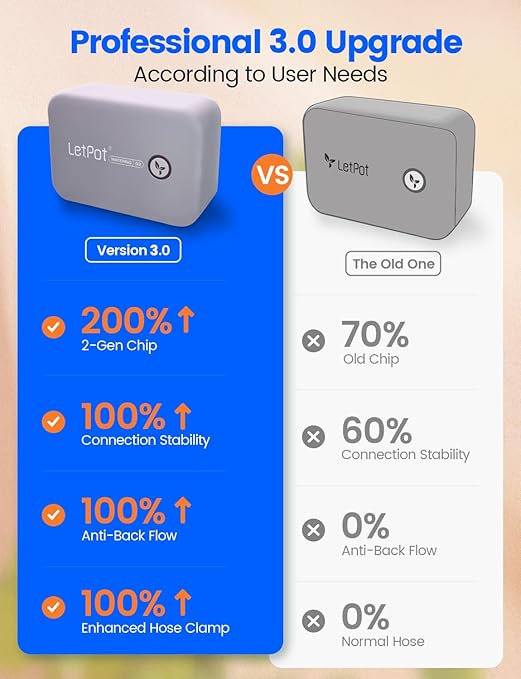- ๐ฅ [New Upgrades for Superior Performance]: The LetPot automatic watering system now includes an anti-backflow valve to prevent the siphon effect, enhancing watering efficiency. Its upgraded 2.0 chip ensures faster and more stable connectivity, while the LetPot app supports up to 5 simultaneous watering tasks for maximum flexibility. Combined with an advanced spiral lock, it maintains better water pressure retention, ensuring consistent and reliable irrigation every time.
