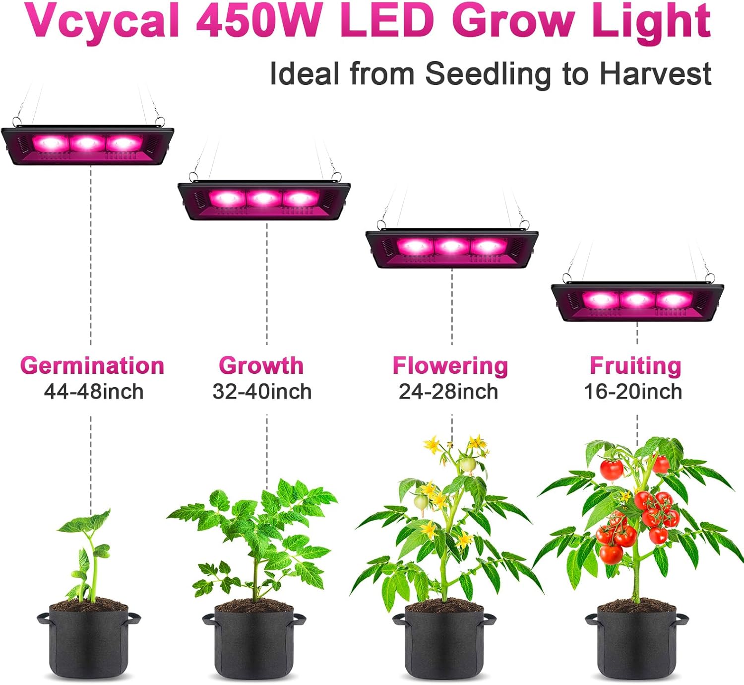 • Sunlike Full Spectrum Grow Lights for Indoor Plants - Vcycal Full spectrum LED grow lights features full spectrum to simulate natural sunlight 380-830nm, accelerate photosynthesis in all directions, and provide seeds, plants, vegetables, succulents, flowers or fruits with the lighting needs of the entire growth cycle. 440-460nm grow lights benefits for seed starting and enhance germination and photosynthesis. 630-660nm Promote flowering, fruiting and increase yield. 780-800nm is good for the plant cell growth