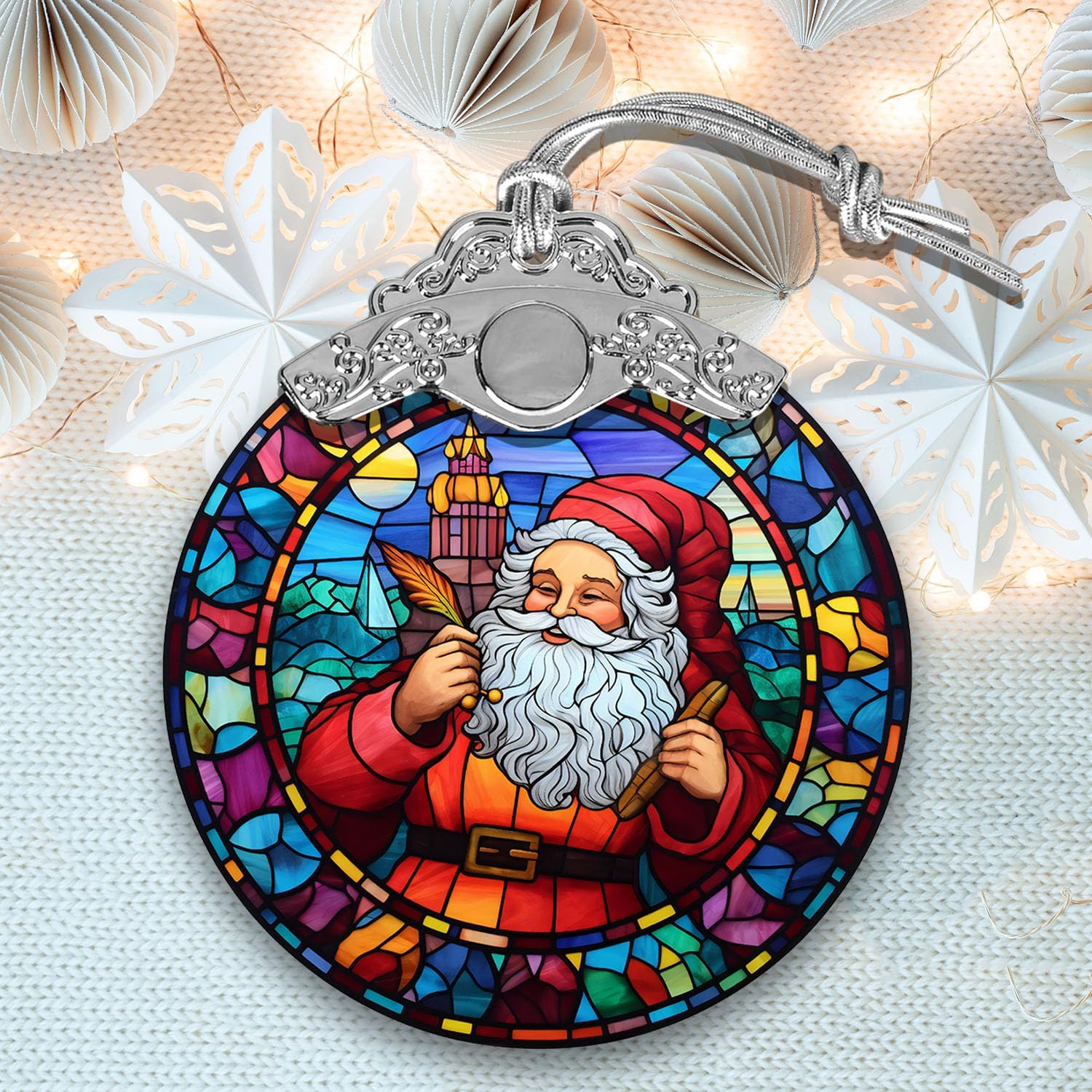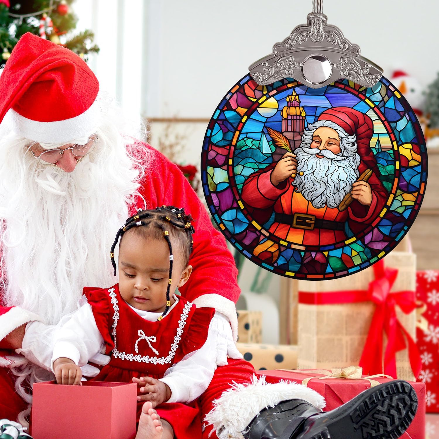 Retro Style Funny Santa Claus Hanging Decors, Santa Claus Colorful Christmas Ornament, Santa Stained Glass Ornament for Xmas, Santa Claus Ornament for Xmas, Santa Ornaments Gift Xmas