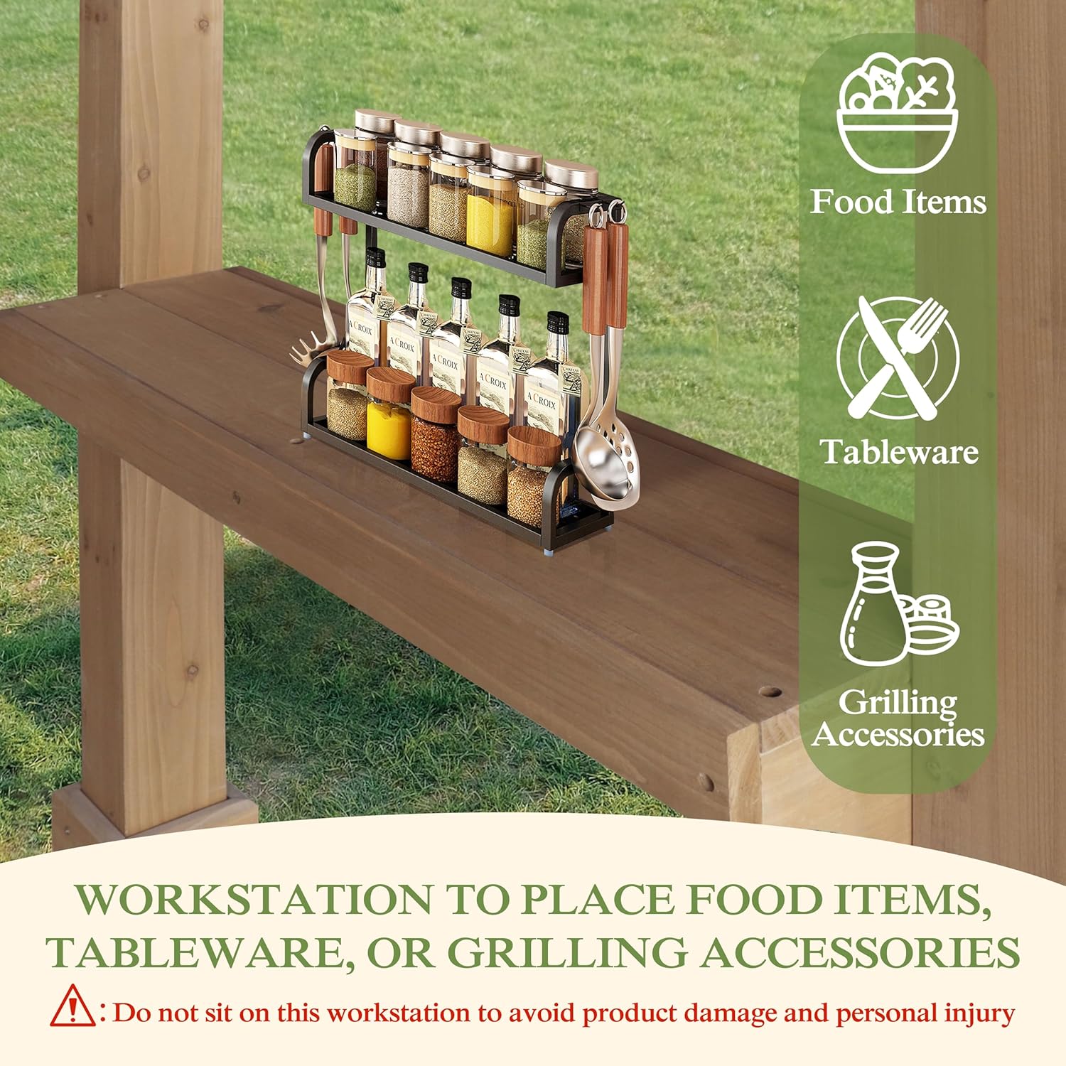 • Spacious BBQ Gazebo: The total dimensions of the BBQ gazebo are 156.7 "L x 73.2 "W x 80.9 "H. Compared to a regular gazebo, this BBQ gazebo has a more spacious shaded area and more room to enjoy BBQ time. Please notice do not sit on this workstation to avoid product damage and personal injury.