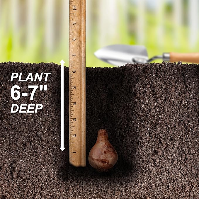• Product Care Instructions : Plant daffodil bulbs in the fall when the ground cools and before the first hard frost. Outside temperature should be about 65 degrees Fahrenheit or cooler. Select a well-drained location that receives full sun to partial shade. Dig a hole 6-7" deep in loosened soil and place bulbs in the hole. Bulbs should be spaced about 4-6” apart. Plant them in the ground with their pointy ends up. Cover with soil and water well so the soil above the bulb settles. Plant daffodil bulbs in the fall when the ground cools and before the first hard frost. Outside temperature should be about 65 degrees Fahrenheit or cooler. Select a well-drain… See more
