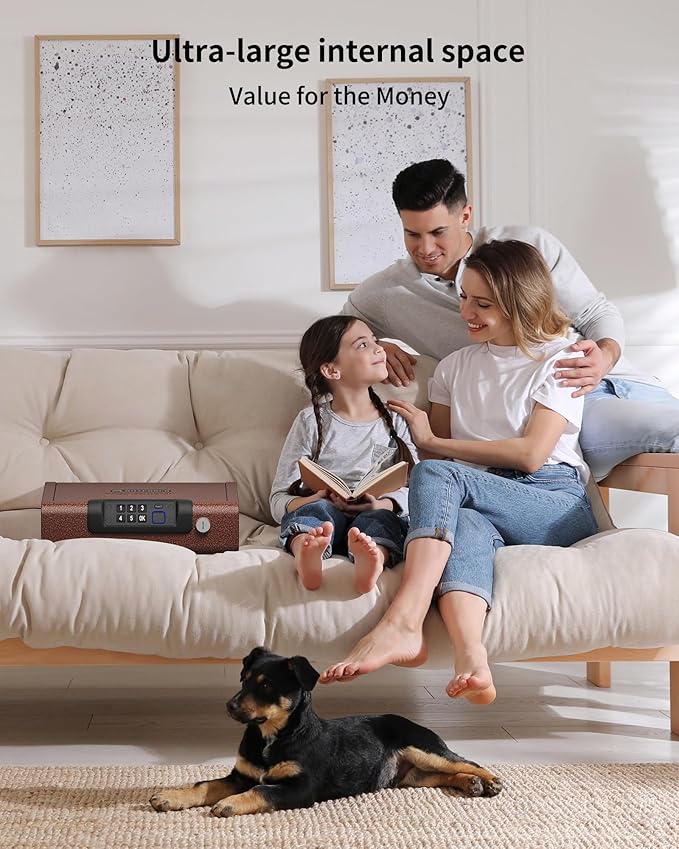 Gun Safe,Biometric Gun Safe for Pistols 3-Ways unlock Fingerprint Digital PIN Key Unlock with Voice, Lock box for Cloakroom living room Bedroom Nightstand and Car BILLCONCH - Antique Bronze