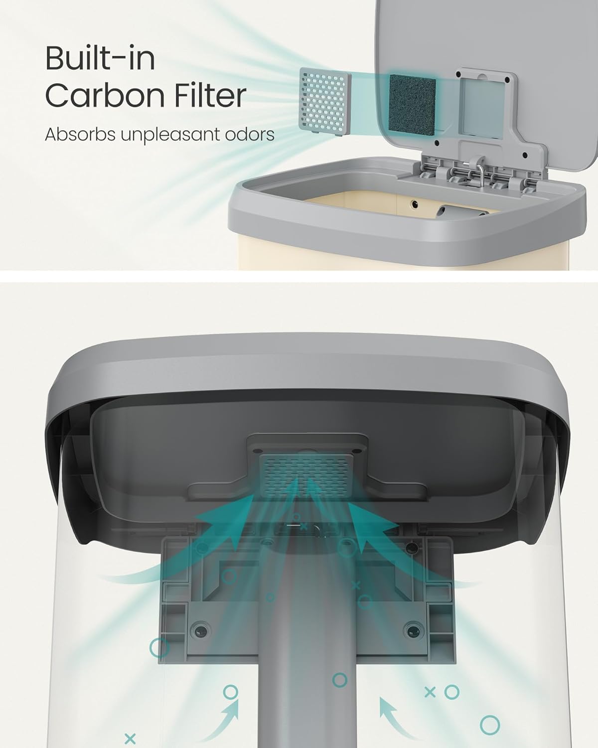 • [Thoughtful Detailing] The carbon filter in the lid helps absorb unpleasant odors, keeping your kitchen smelling fresh. Included are 15 liner bags (16-18 gallons) that perfectly fit this kitchen can